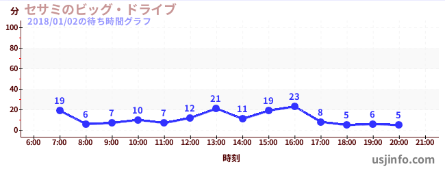 • セサミのビッグ・ドライブ$B$N(B2018年01月02日の待ち時間