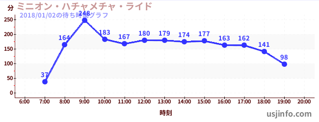 • ミニオン・ハチャメチャ・ライド$B$N(B2018年01月02日の待ち時間