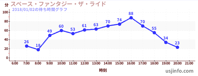 • スペース・ファンタジー・ザ・ライド$B$N(B2018年01月02日の待ち時間
