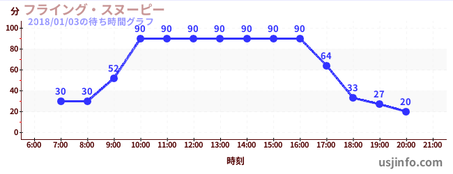 • フライング・スヌーピー$B$N(B2018年01月03日の待ち時間