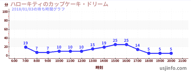 • ハローキティのカップケーキ・ドリーム$B$N(B2018年01月03日の待ち時間