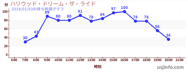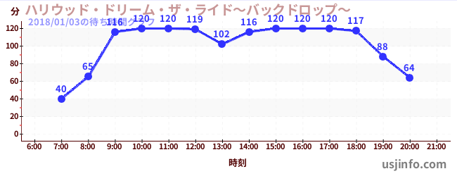 • ハリウッド・ドリーム・ザ・ライド$B$N(B2018年01月03日の待ち時間