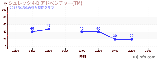 • シュレック 4-D アドベンチャー(TM)$B$N(B2018年01月03日の待ち時間