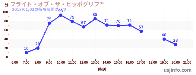 • フライト・オブ・ザ・ヒッポグリフ™$B$N(B2018年01月03日の待ち時間