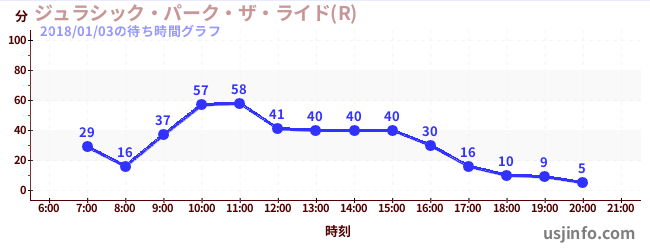 • ジュラシック・パーク・ザ・ライド(R)$B$N(B2018年01月03日の待ち時間