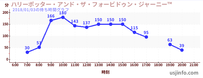 • ハリーポッター・アンド・ザ・フォービドゥン・ジャーニー™$B$N(B2018年01月03日の待ち時間