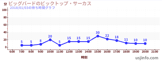 • ビッグバードのビックトップ・サーカス$B$N(B2018年01月03日の待ち時間