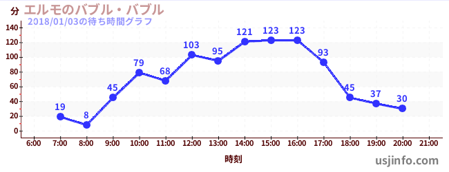 • エルモのバブル・バブル$B$N(B2018年01月03日の待ち時間