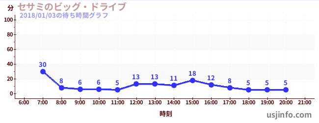 • セサミのビッグ・ドライブ$B$N(B2018年01月03日の待ち時間