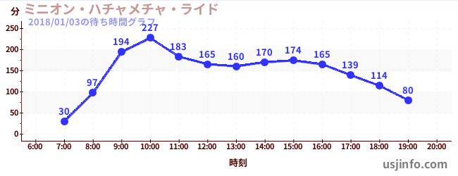 • ミニオン・ハチャメチャ・ライド$B$N(B2018年01月03日の待ち時間