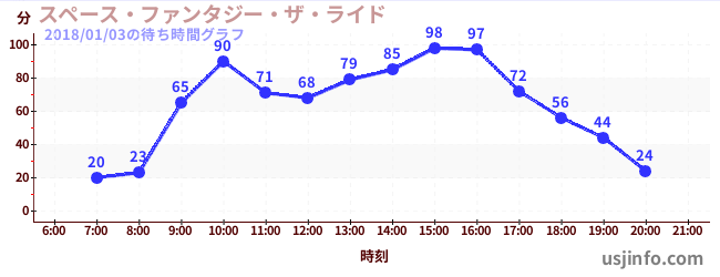 • スペース・ファンタジー・ザ・ライド$B$N(B2018年01月03日の待ち時間