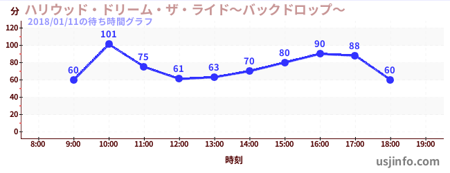 • ハリウッド・ドリーム・ザ・ライド〜バックドロップ〜$B$N(B2018年01月11日の待ち時間