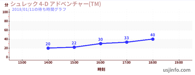 • シュレック 4-D アドベンチャー(TM)$B$N(B2018年01月11日の待ち時間