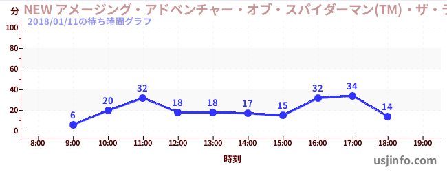 • NEW アメージング・アドベンチャー・オブ・スパイダーマン(TM)・ザ・ライド 4K3D$B$N(B2018年01月11日の待ち時間