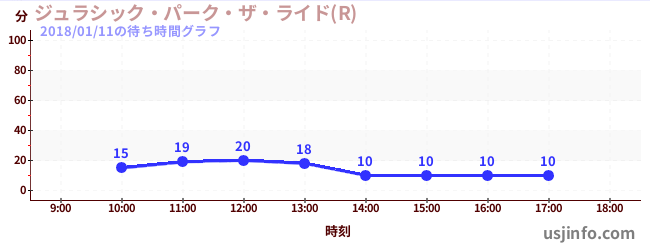 • ジュラシック・パーク・ザ・ライド(R)$B$N(B2018年01月11日の待ち時間