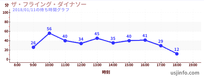 • ザ・フライング・ダイナソー$B$N(B2018年01月11日の待ち時間