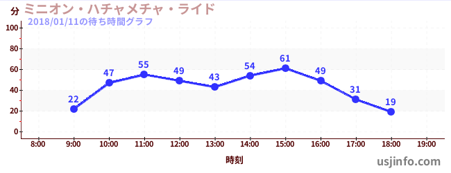 • ミニオン・ハチャメチャ・ライド$B$N(B2018年01月11日の待ち時間
