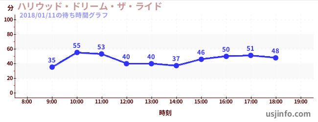 • ハリウッド・ドリーム・ザ・ライド$B$N(B2018年01月11日の待ち時間