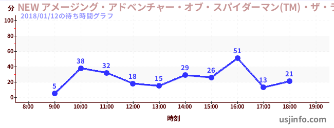 • NEW アメージング・アドベンチャー・オブ・スパイダーマン(TM)・ザ・ライド 4K3D$B$N(B2018年01月12日の待ち時間