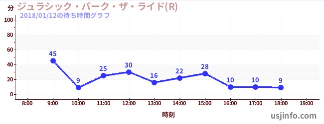 • ジュラシック・パーク・ザ・ライド(R)$B$N(B2018年01月12日の待ち時間