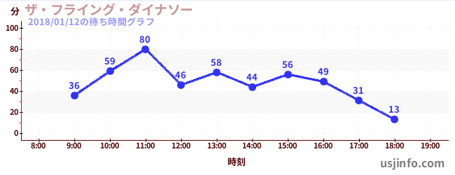 • ザ・フライング・ダイナソー$B$N(B2018年01月12日の待ち時間