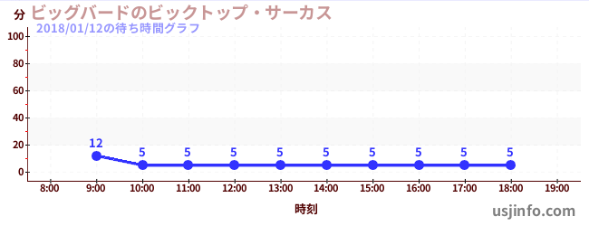 • ビッグバードのビックトップ・サーカス$B$N(B2018年01月12日の待ち時間