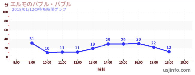 • エルモのバブル・バブル$B$N(B2018年01月12日の待ち時間