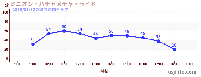 • ミニオン・ハチャメチャ・ライド$B$N(B2018年01月12日の待ち時間