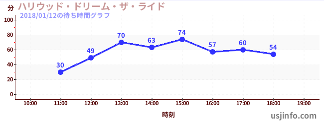 • ハリウッド・ドリーム・ザ・ライド$B$N(B2018年01月12日の待ち時間