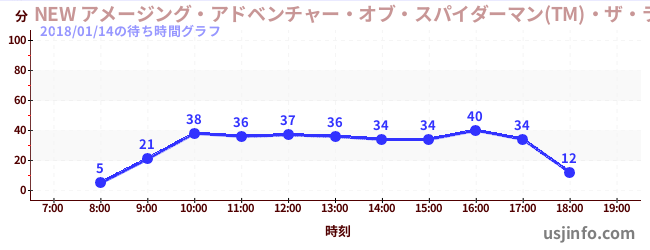 • NEW アメージング・アドベンチャー・オブ・スパイダーマン(TM)・ザ・ライド 4K3D$B$N(B2018年01月14日の待ち時間