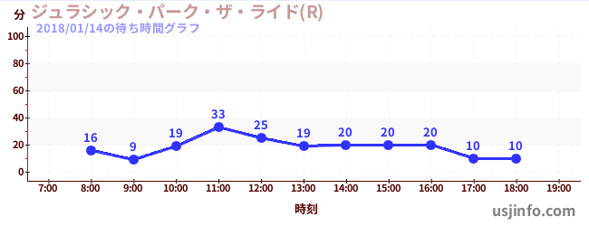 • ジュラシック・パーク・ザ・ライド(R)$B$N(B2018年01月14日の待ち時間