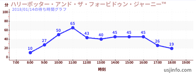 • ハリーポッター・アンド・ザ・フォービドゥン・ジャーニー™$B$N(B2018年01月14日の待ち時間