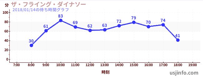 • ザ・フライング・ダイナソー$B$N(B2018年01月14日の待ち時間