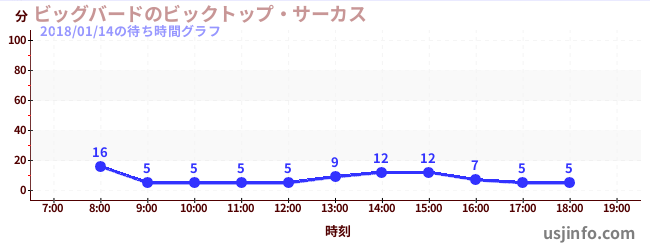 • ビッグバードのビックトップ・サーカス$B$N(B2018年01月14日の待ち時間