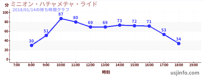 • ミニオン・ハチャメチャ・ライド$B$N(B2018年01月14日の待ち時間