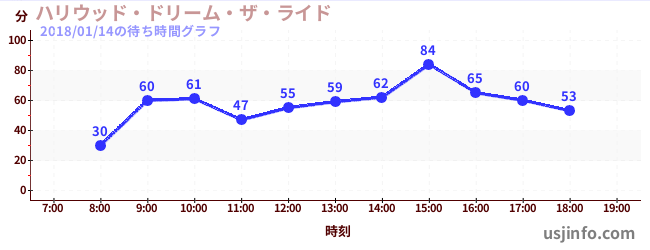• ハリウッド・ドリーム・ザ・ライド$B$N(B2018年01月14日の待ち時間