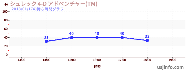 • シュレック 4-D アドベンチャー(TM)$B$N(B2018年01月17日の待ち時間