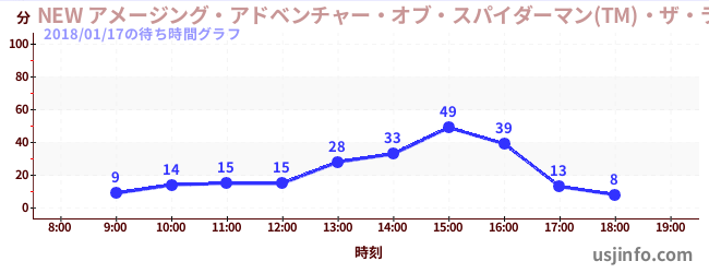 • NEW アメージング・アドベンチャー・オブ・スパイダーマン(TM)・ザ・ライド 4K3D$B$N(B2018年01月17日の待ち時間