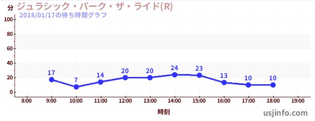 • ジュラシック・パーク・ザ・ライド(R)$B$N(B2018年01月17日の待ち時間
