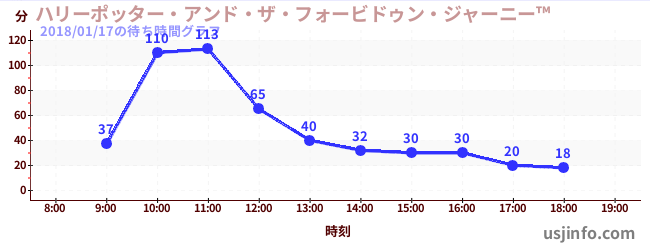 • ハリーポッター・アンド・ザ・フォービドゥン・ジャーニー™$B$N(B2018年01月17日の待ち時間