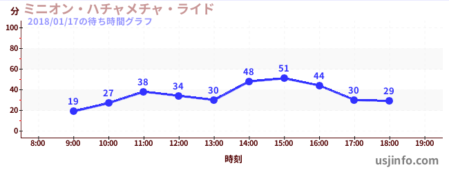 • ミニオン・ハチャメチャ・ライド$B$N(B2018年01月17日の待ち時間