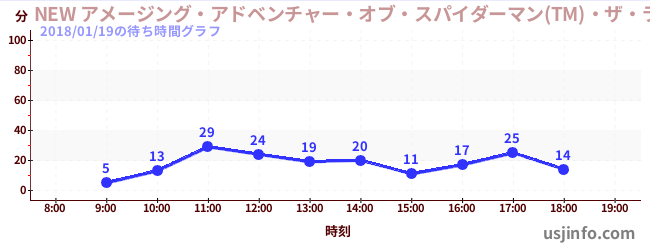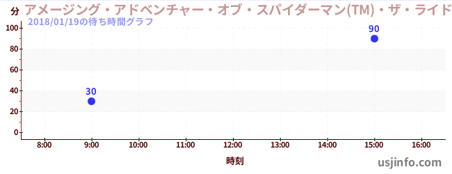 • アメージング・アドベンチャー・オブ・スパイダーマン(TM)・ザ・ライド$B$N(B2018年01月19日の待ち時間