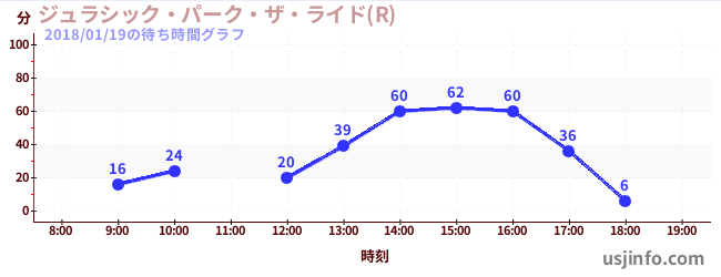 • ジュラシック・パーク・ザ・ライド(R)$B$N(B2018年01月19日の待ち時間