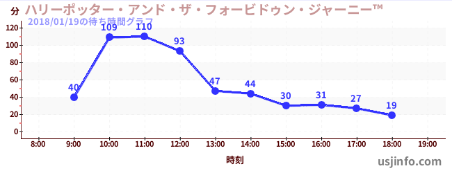 • ハリーポッター・アンド・ザ・フォービドゥン・ジャーニー™$B$N(B2018年01月19日の待ち時間