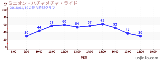 • ミニオン・ハチャメチャ・ライド$B$N(B2018年01月19日の待ち時間