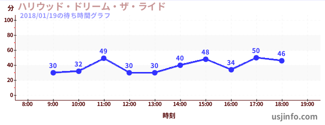• ハリウッド・ドリーム・ザ・ライド$B$N(B2018年01月19日の待ち時間