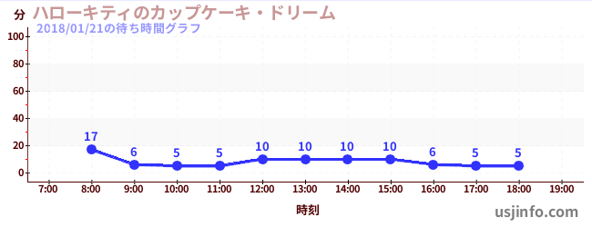 • ハローキティのカップケーキ・ドリーム$B$N(B2018年01月21日の待ち時間
