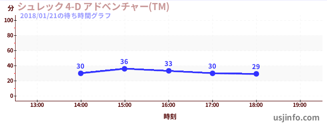 • シュレック 4-D アドベンチャー(TM)$B$N(B2018年01月21日の待ち時間