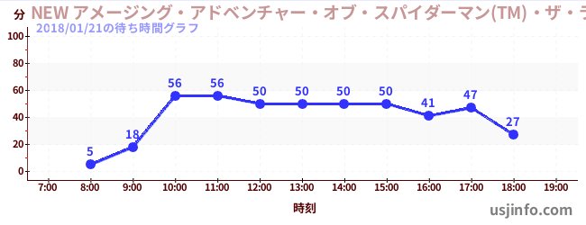 • NEW アメージング・アドベンチャー・オブ・スパイダーマン(TM)・ザ・ライド 4K3D$B$N(B2018年01月21日の待ち時間