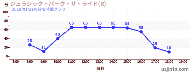 • ジュラシック・パーク・ザ・ライド(R)$B$N(B2018年01月21日の待ち時間